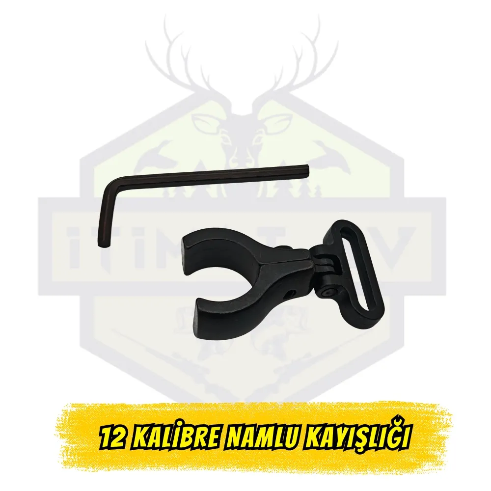Güçlü Kavrama, Güvenli Taşıma! 12 kalibre (12 Ga) av tüfekleri için özel olarak tasarlanmış, vidalı kelepçe sistemli namlu kayışlığı aparatı. Namluda delme, kaynak veya taşlama işlemi gerektirmeyen pratik montaj yapısı. Yüksek mukavemetli çelik alaşımı ve korozyona dayanıklı mat siyah kaplaması ile en ağır tüfekleri dahi omuzda taşımayı kolaylaştıran profesyonel aksesuar.