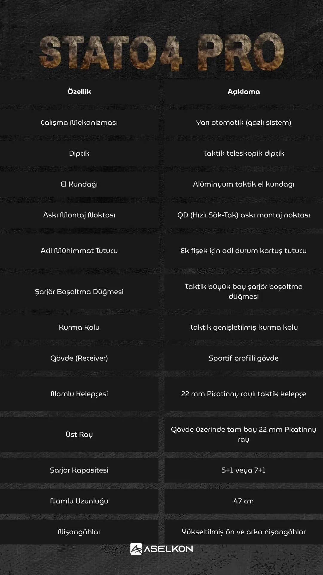 Aselkon STATO4 PRO EXTRA BLACK SİYAH