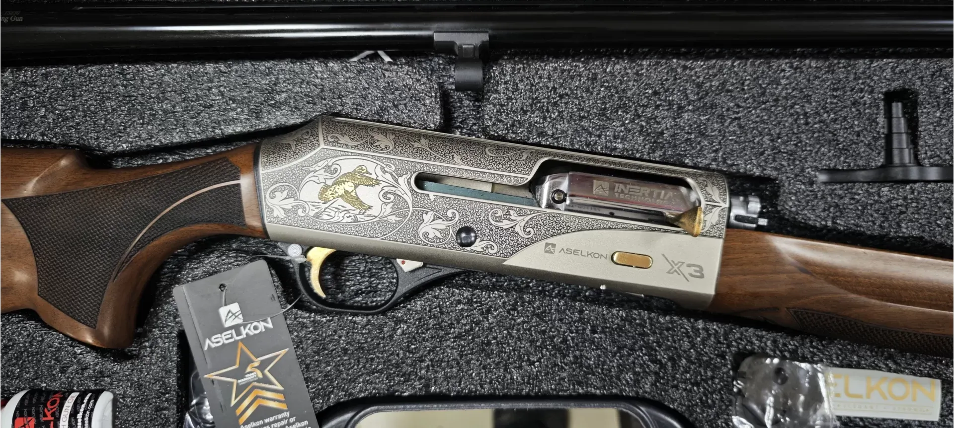 AGM Prometheus GOLD DELUXE Yarı Otomatik Av Tüfeği (Altın Gravürlü - Türk Cevizi)