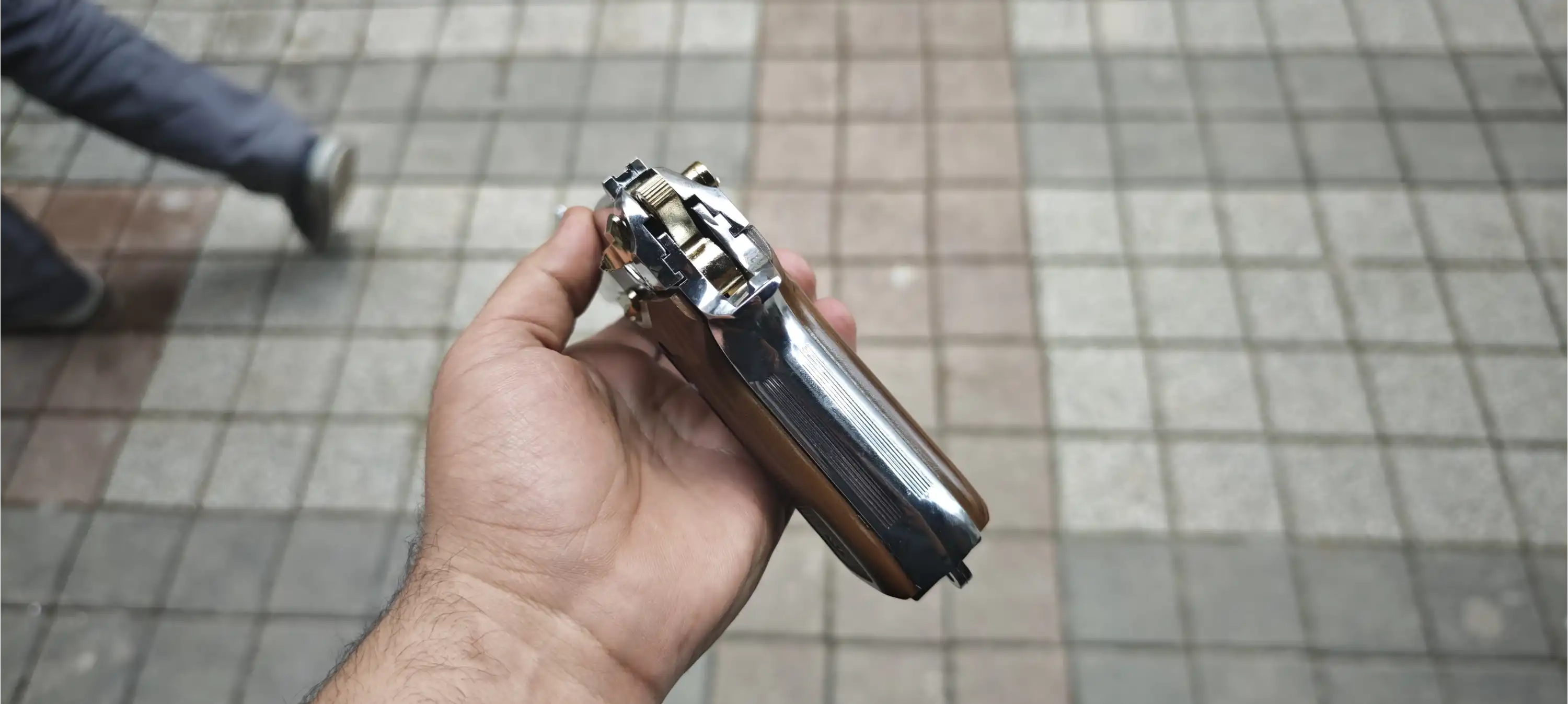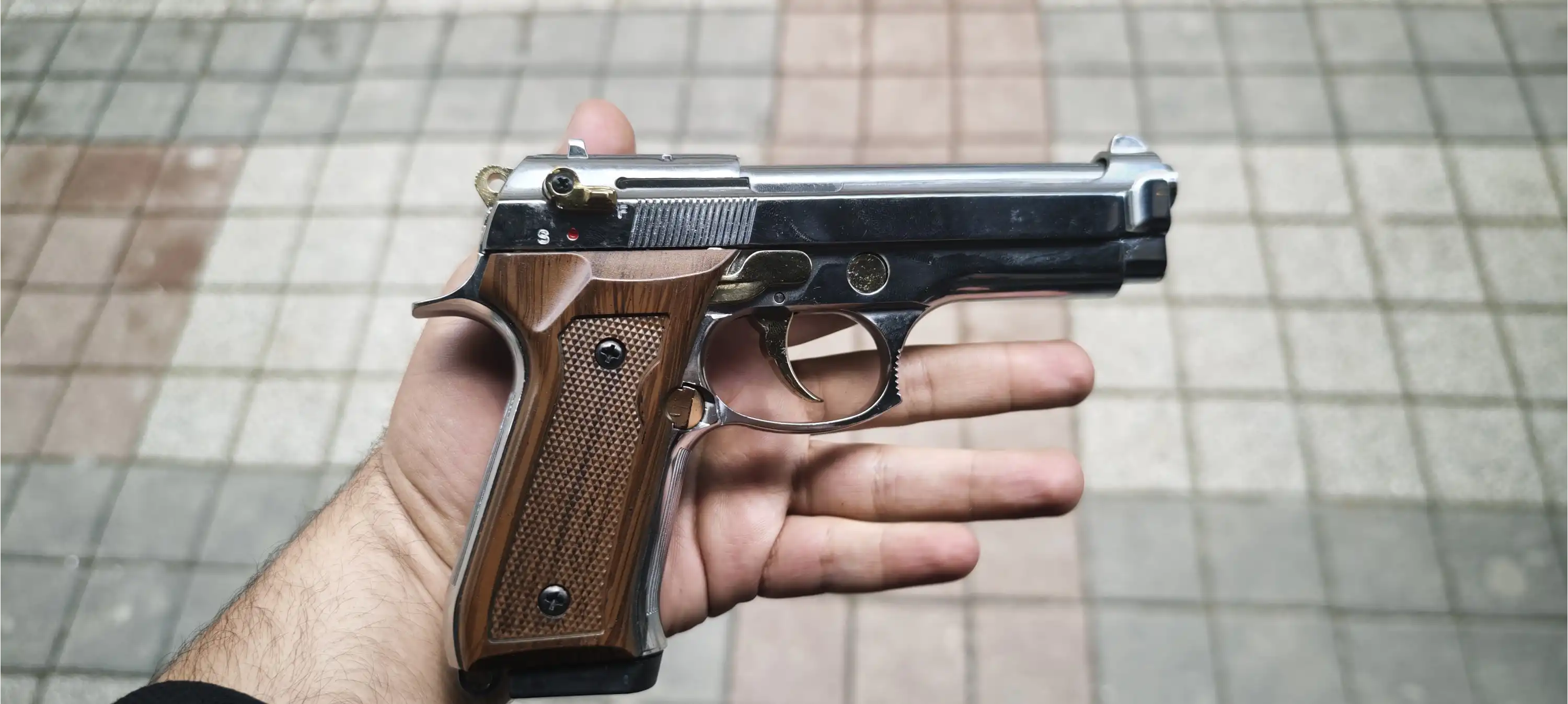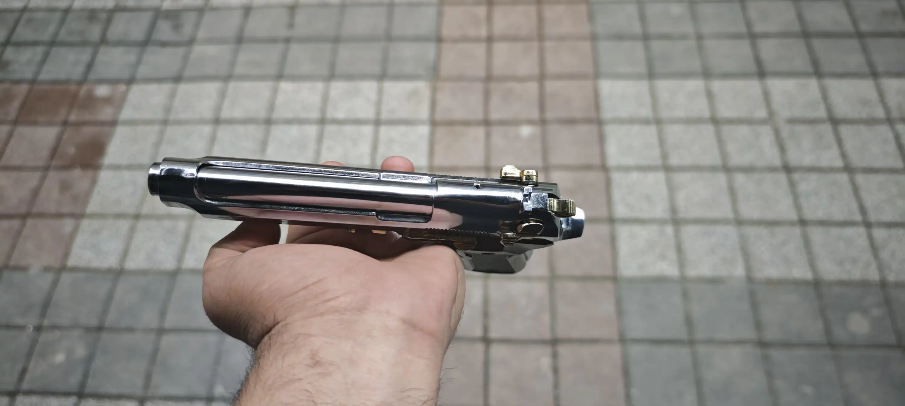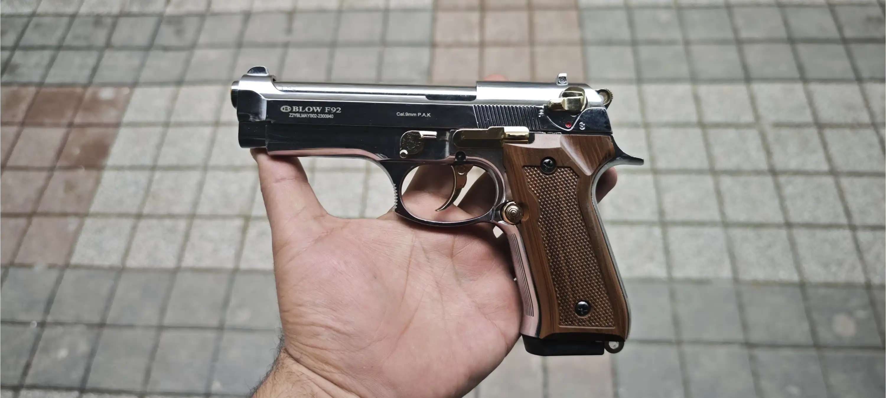BLOW F92 Kurusıkı Ses Tabancası Parlak Krom Sarı Parçalı