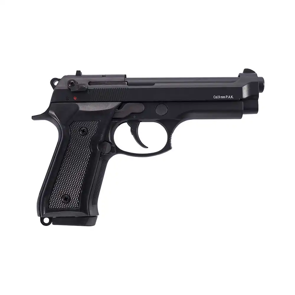 Kurusıkı dünyasının efsanesi Blow F92'nin klasik siyah modeli. İkonik Beretta 92 tasarımını, sağlam gövde yapısı ve 17+1 yüksek fişek kapasitesi ile birleştiren, en çok tercih edilen kurusıkı tabanca. Güvenilir ve ergonomik.