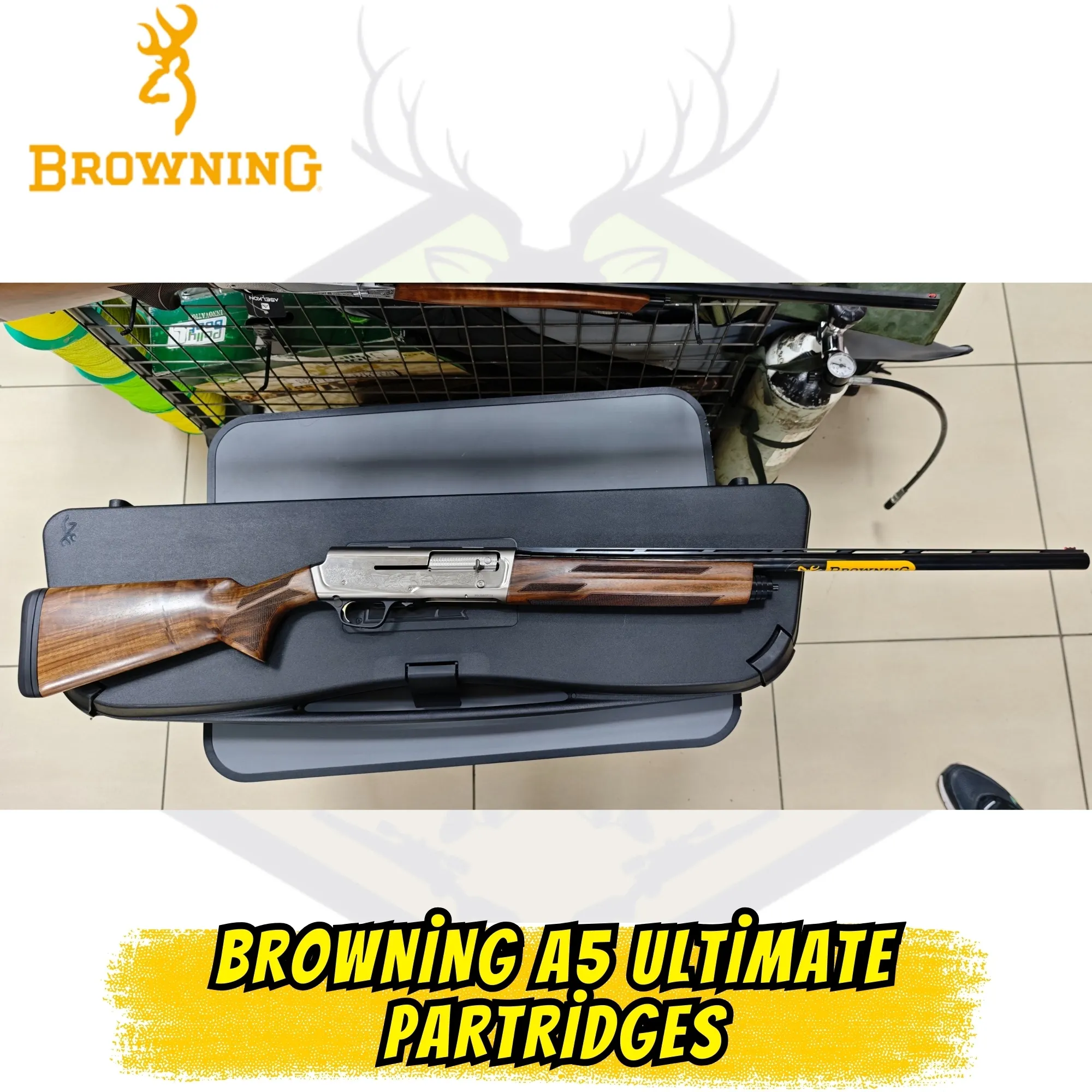 Browning A5 Ultimate Partridges otomatik av tüfeği ile klasik tasarımı modern teknolojiyle yaşayın. 12 kalibre, 28" namlu, 4+1 kapasite, ceviz stok partridge oyma detaylı, Kinematic Drive System ile yumuşak atış ve hızlı döngü.