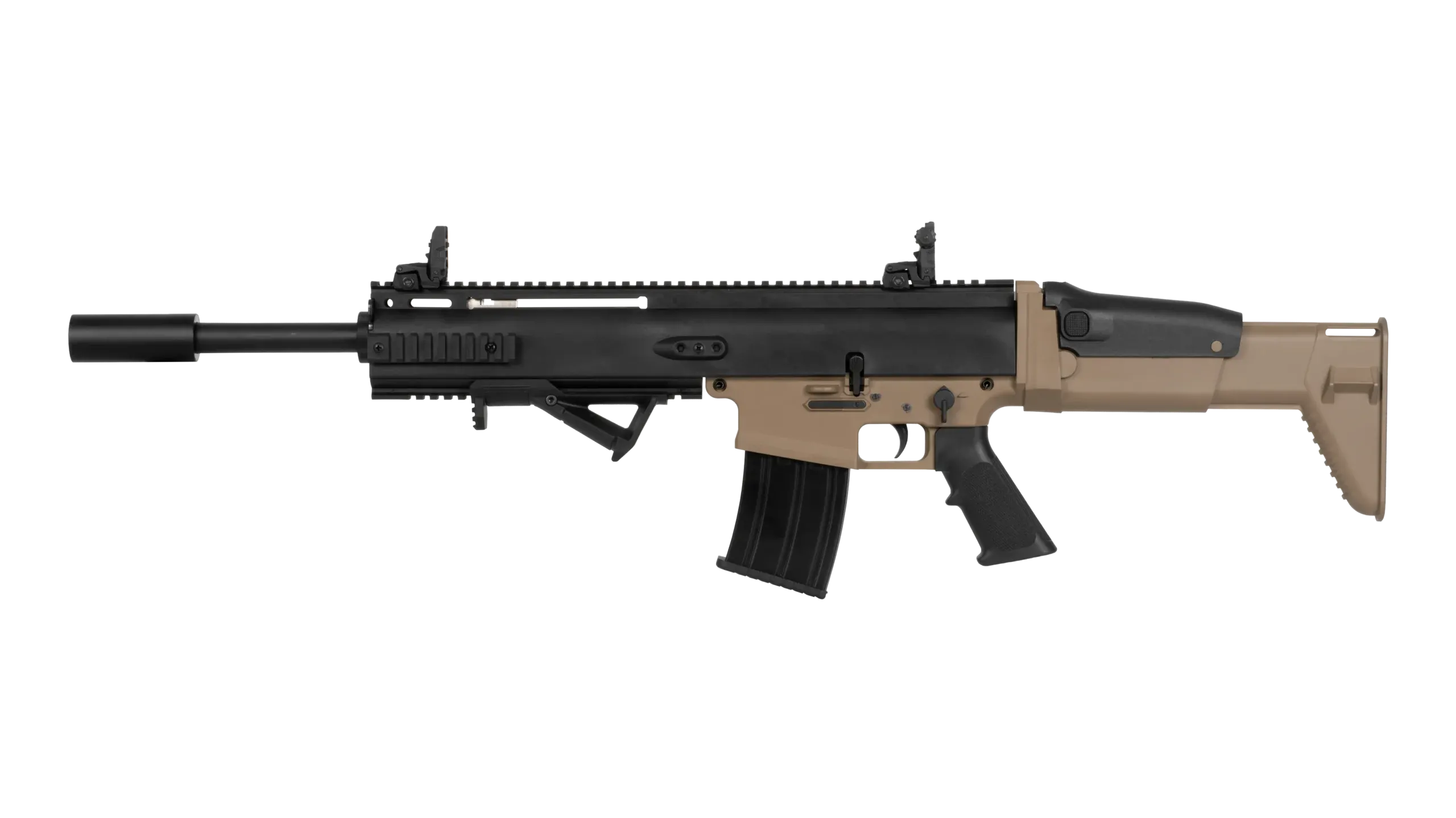 SCAR görünümlü agresif ve modern tasarımı sayesinde bu tüfek, hem dikkatleri üzerine çeker hem de sahada üstün performans sağlar.
