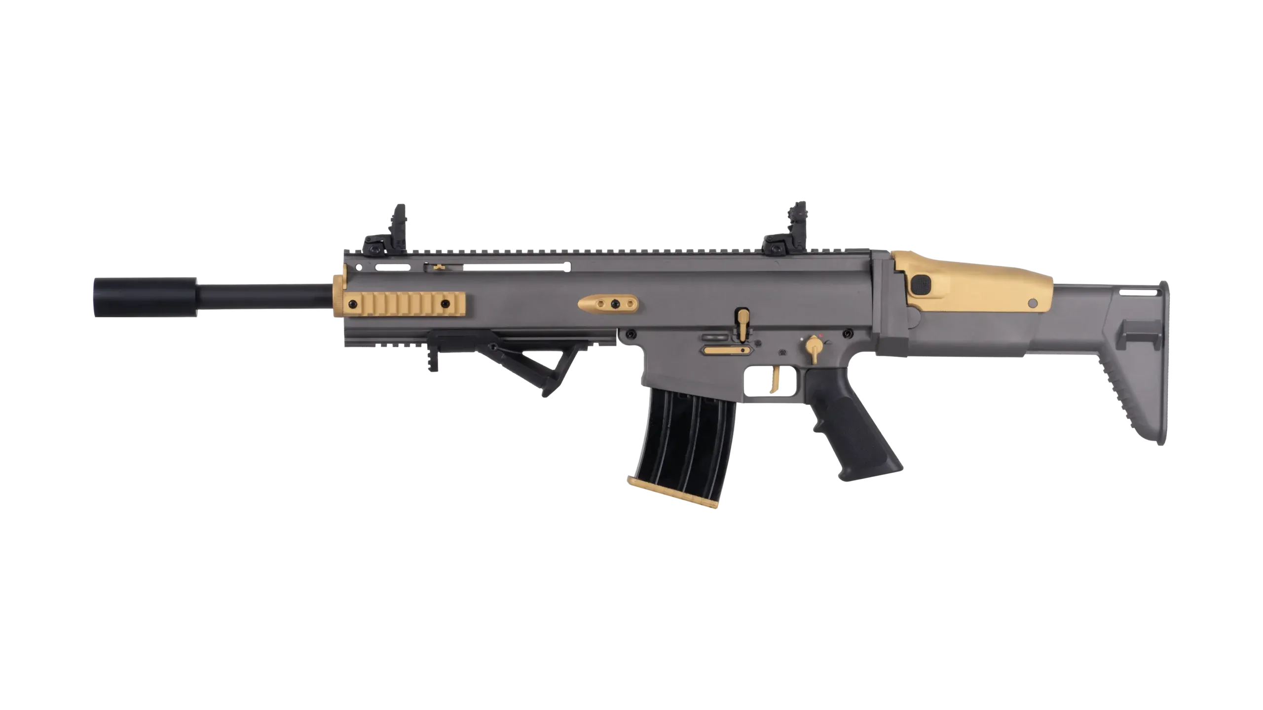 SCAR görünümlü agresif ve modern tasarımı sayesinde bu tüfek, hem dikkatleri üzerine çeker hem de sahada üstün performans sağlar.