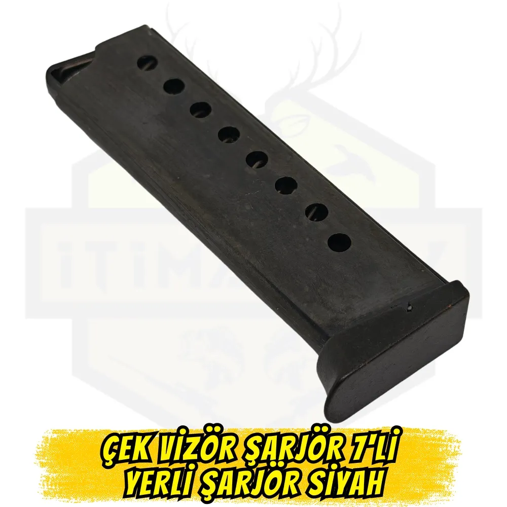 "Çek Vizör" olarak bilinen CZ-50 ve CZ-70 modelleri ile %100 uyumlu, 7 fişek kapasiteli yerli üretim yedek şarjör. 7.65mm (.32 ACP) kalibreli bu klasik tabancalar için tasarlanmış, çelik gövdeli ve hassas besleme performanslı yedek parça.