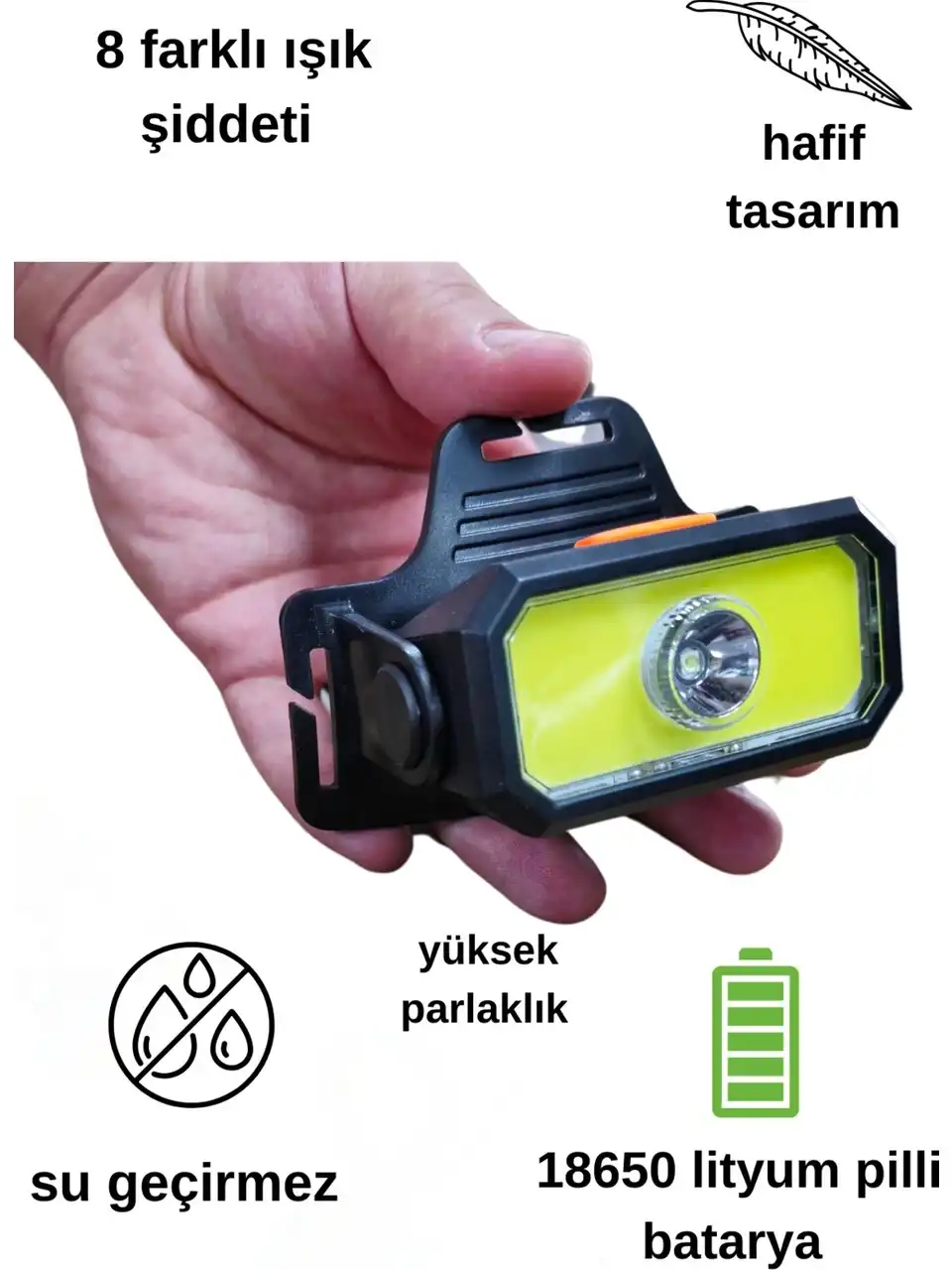 ### Su GeÇİrmez Ultra GÜÇLÜ Kafa Feneri - 8 Farklı Işık Şiddeti, 18650 Lityum Pil