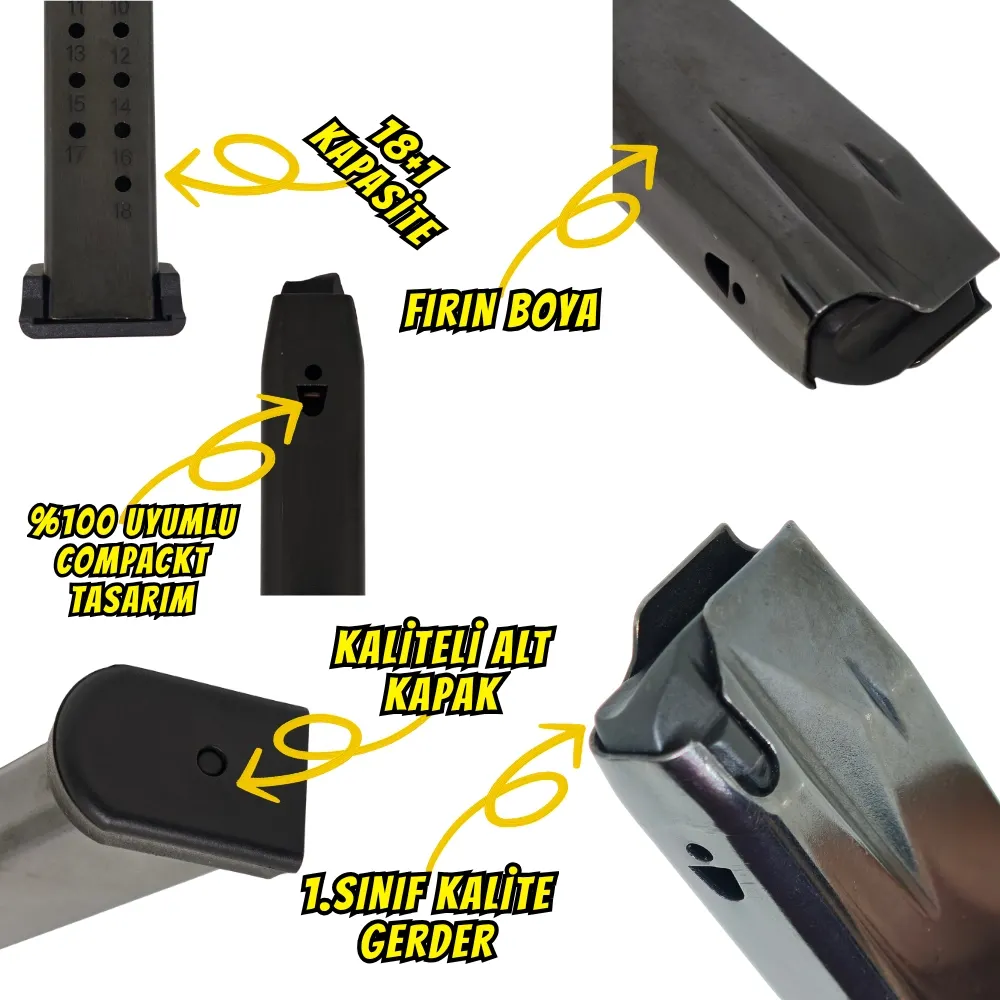 HS-9 G2 (Gripzone) Uyumlu Yerli Üretim Yedek Şarjör (18+1)