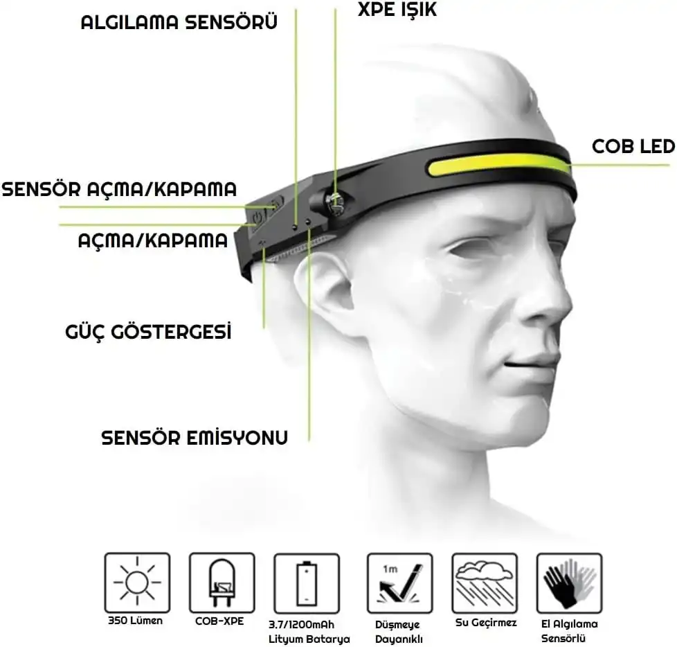GOLD ORİON LX200 Sensörlü Şarjlı COB LED ve XPE 5 Mod Kafa Lambası