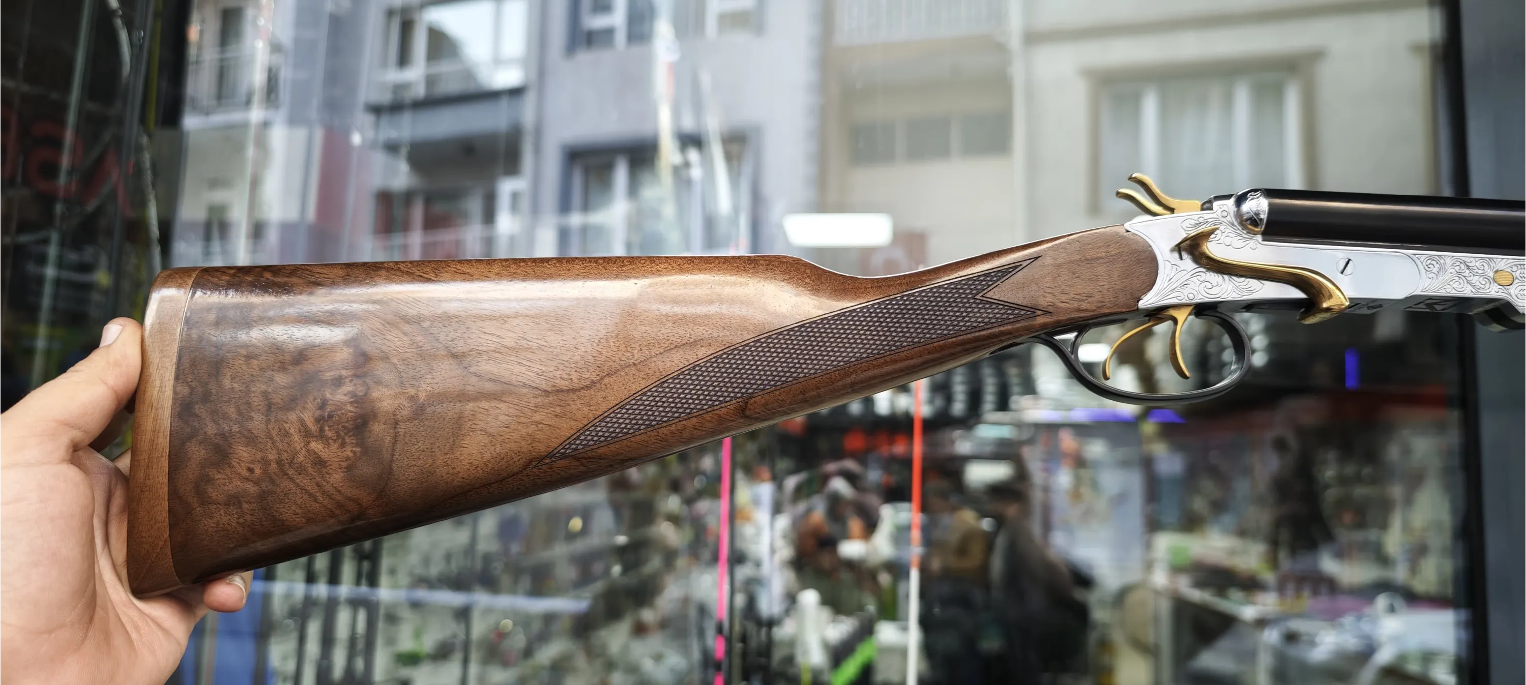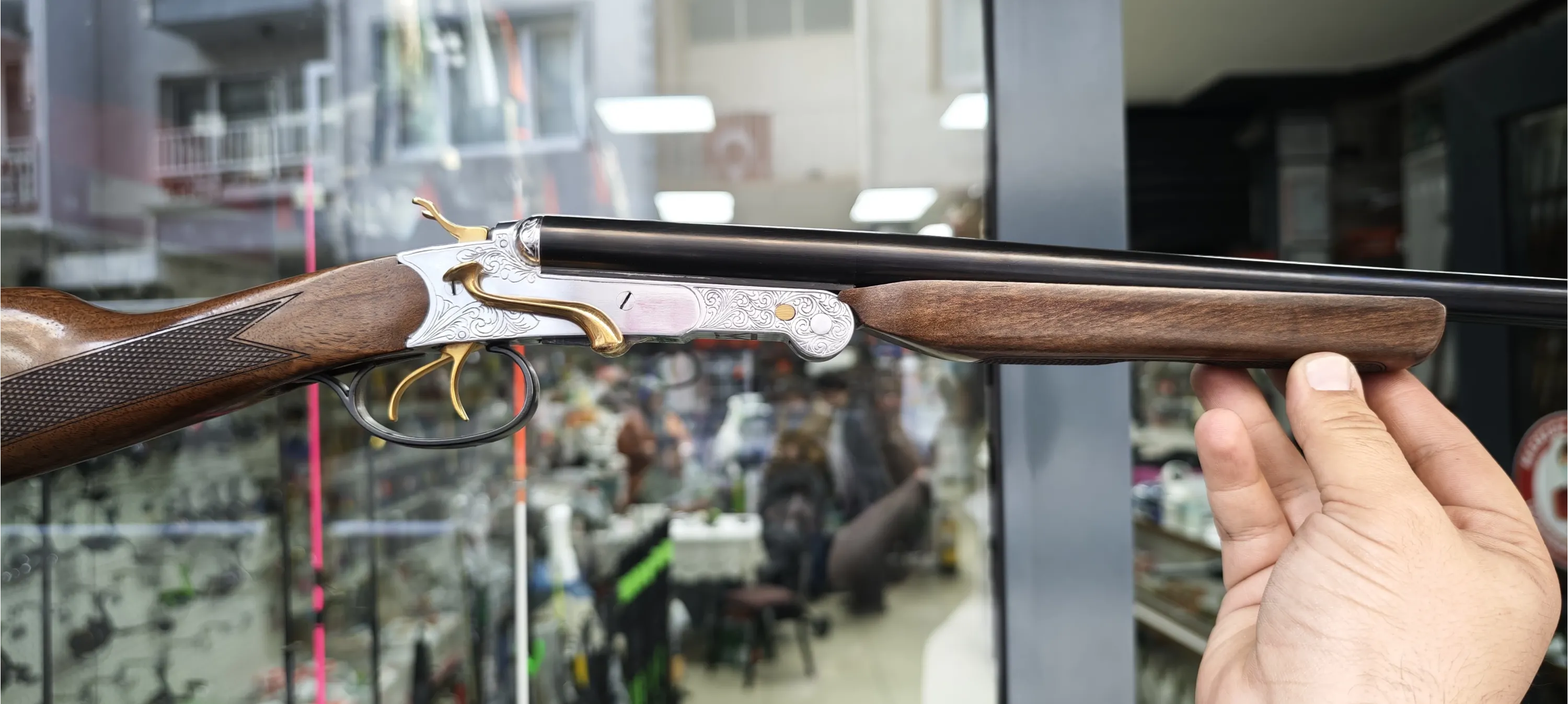 MARATON 36KALİBRE ÇİFTE Av Tüfeği İŞLEMELİ SARI PARÇALI