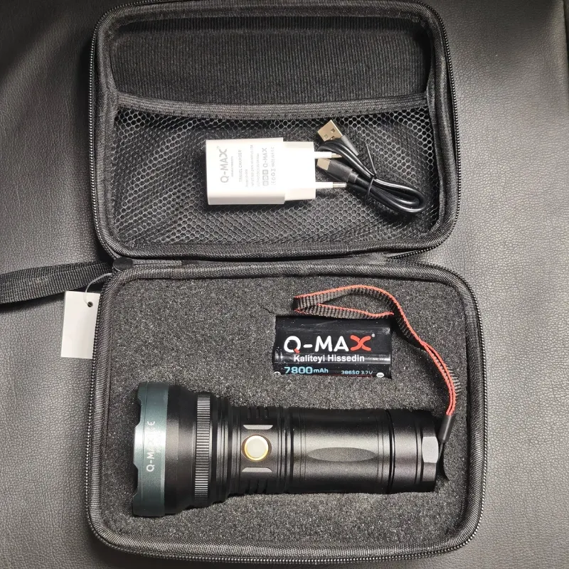 Q-MAX PS-3500 Şarj Edilebilir Profesyonel Avcı El Feneri - Super Light Rechargeable Flashlight