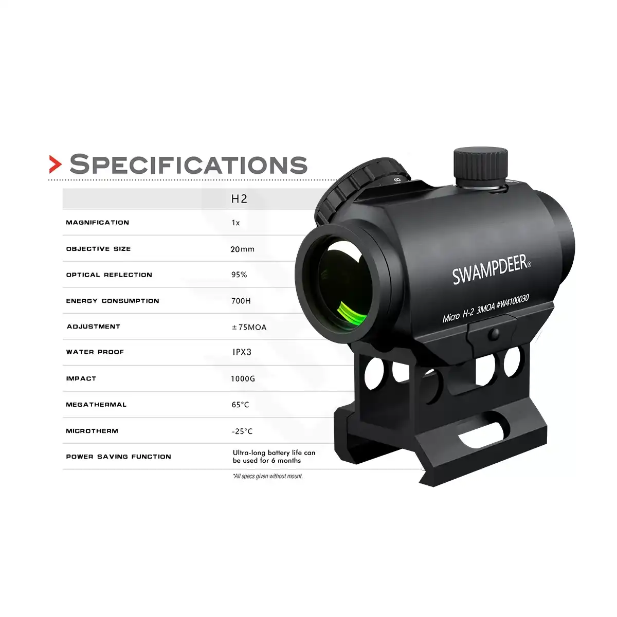 H2 Red Dot, kesin nişan alma ve dayanıklılık gereksinimleri için tasarlanmış üstün özelliklere sahip bir optik cihazdır. Geniş çıkış göz mesafesi ve kullanıcı dostu görüş alanı ile mükemmel nişan alma deneyimi sunar. Tam çok katmanlı antirefle kaplama, daha parlak bir görüş alanı sağlar.