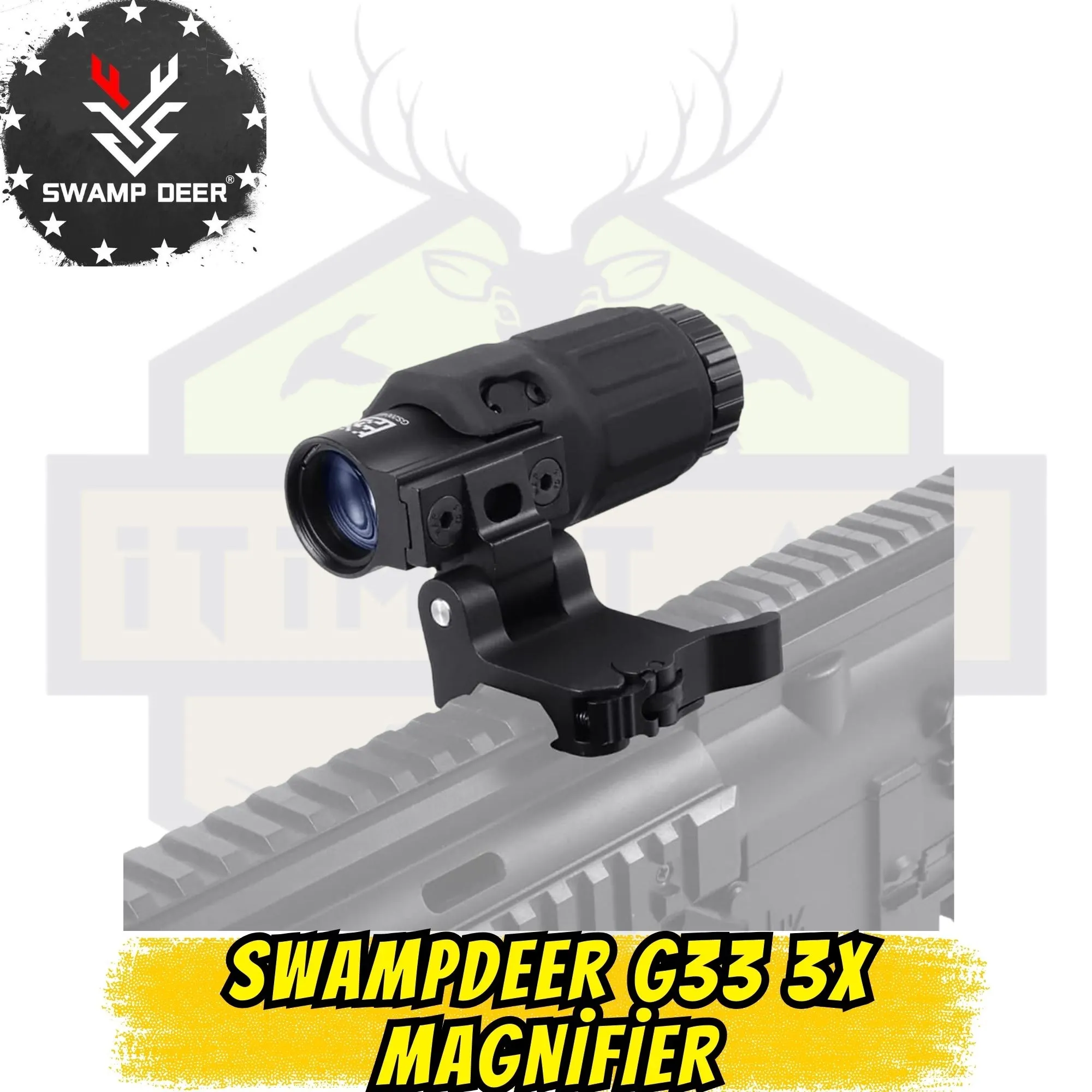 "Swampdeer G33 3X Magnifier, Red Dot ve Holografik nişangahlarınızı (HWS) anında yüksek performanslı bir dürbüne dönüştürür. 3 kat sabit büyütme özelliği ile hedef tanıma kabiliyetinizi maksimuma çıkarırken, yana katlanır (flip-to-side) mekanizması sayesinde saniyeler içinde yakın ve uzak mesafe atışları arasında geçiş yapmanıza olanak tanır."