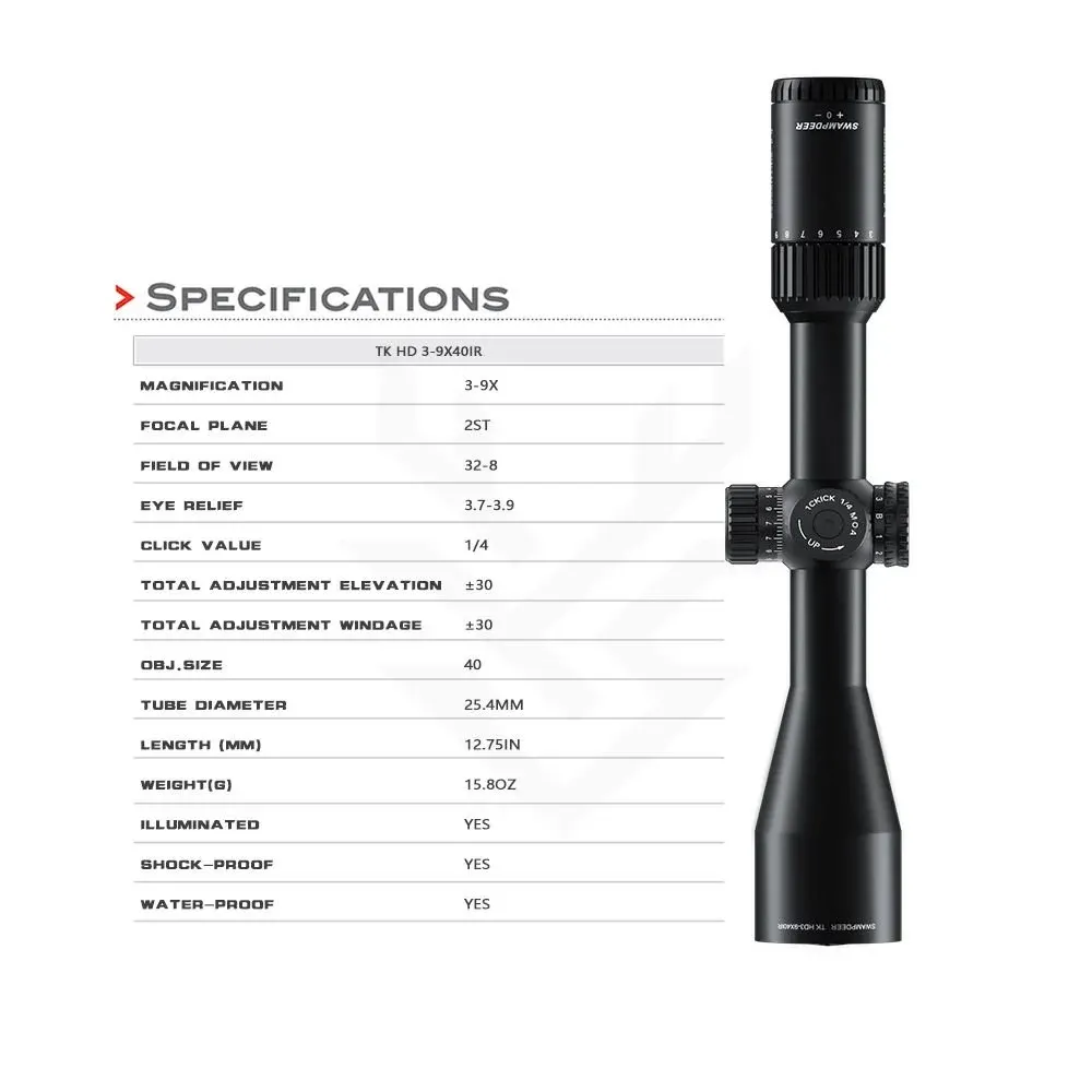 Swampdeer TD HD 3-9x40 IR HS Işıklı Tüfek Dürbünü (Mil-Dot Retikül)
