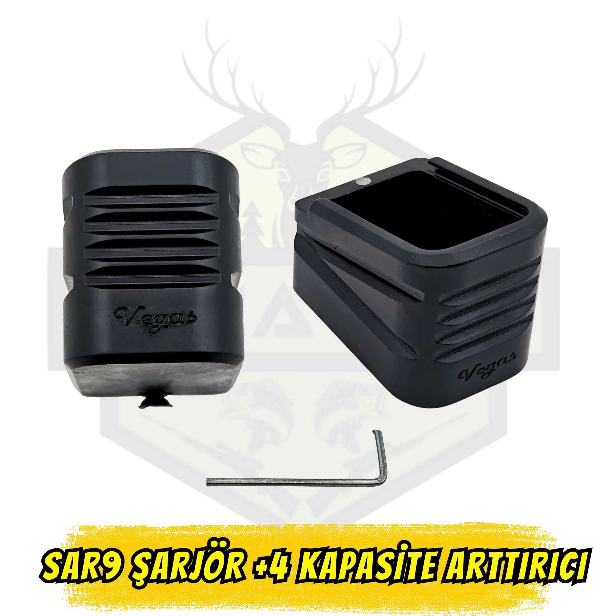 Sarsılmaz SAR9 İçin Sınırları Zorlayın! Sarsılmaz SAR9 serisi tabancalar için özel olarak tasarlanmış, şarjör kapasitesini +5 mermi artıran Vegas profesyonel metal şarjör uzatma aparatı. Yüksek mukavemetli metal alaşımdan imal edilen gövdesi, SAR9'un agresif ve modern yapısına tam uyum sağlar. Taktik çekişlerde mükemmel tutuş sunan ve şarjör değişimlerini hızlandıran ömürlük modifikasyon parçası.